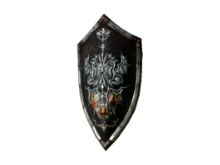 Внутриигровое описание: Щит, описанный в древних легендах. Говорят, его изготовили из когтей черного дракона, поэтому он так и выглядит. Легенду о бледном драконе много где рассказывают, но лишь обрывками. Изредка упоминается и черный дракон. Некоторые считают, что рассказчики добавили его в историю совсем недавно.