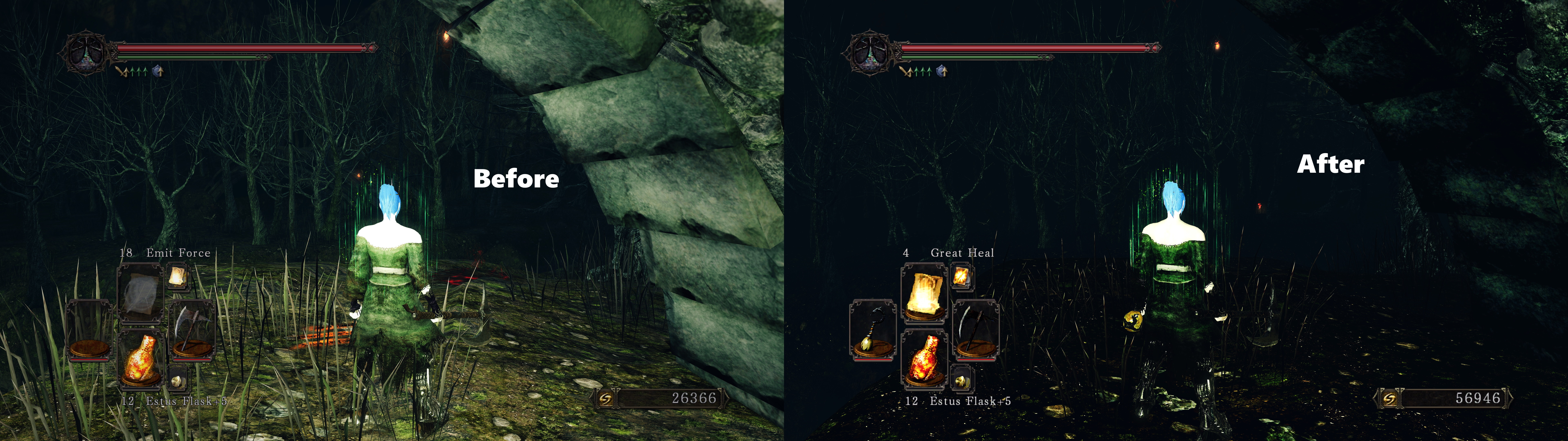 Как известно, Dark Souls 2 является лучшей частью серии и самым странным примером даунгрейда. Представляя проект впервые разработчики много говорили о мрачной и страшной картинке и давящей атмосфере. Однако после релиза игроки увидели, что текстуры вышли слишком яркими, а сама игра немного красочнее, чем первая часть. Моддер Save Smokey решил исправить эти недочеты. Поклонник Dark Souls 2 самостоятельно улучшил почти 6000 текстур, сделав их мрачнее. Он использовал программу iGP11, которая позволяет менять тональность и яркость присутствующих в игре текстур.