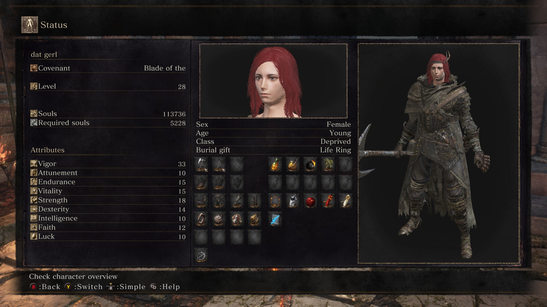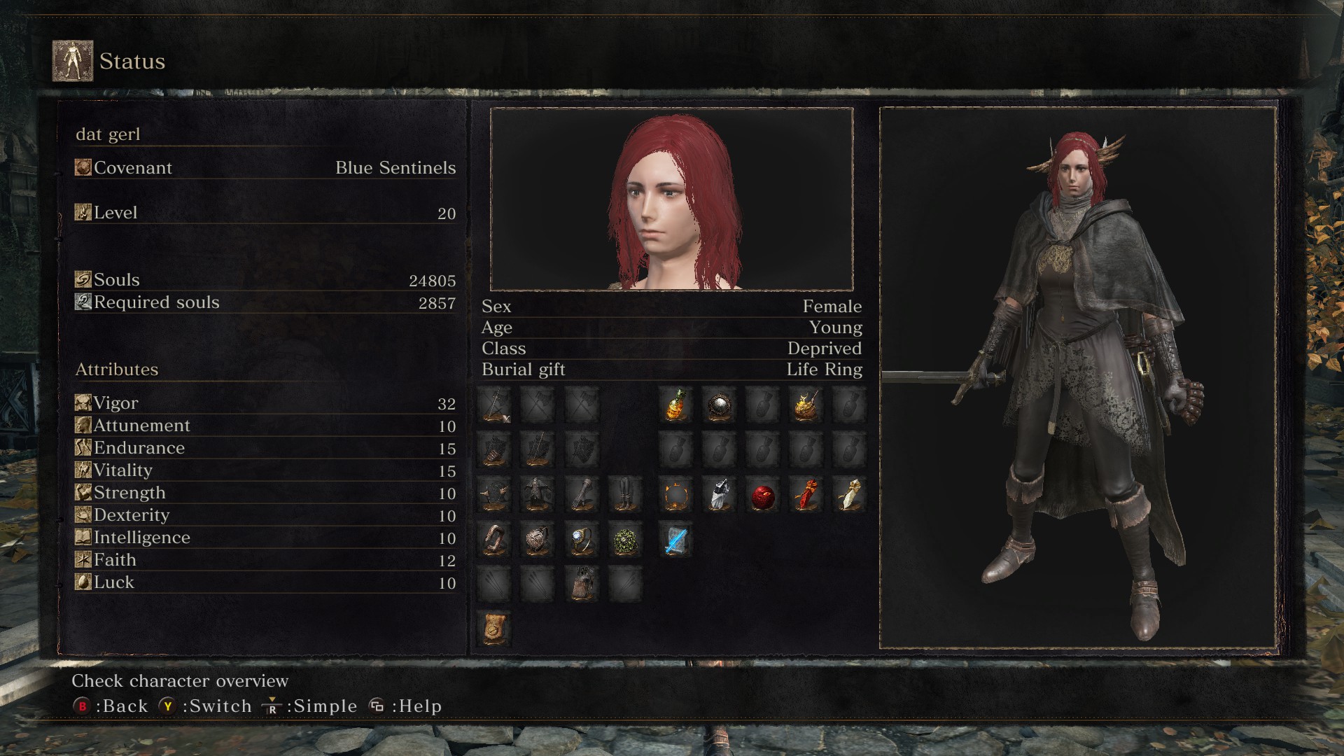 На болотах просто вытирал пробегающими полы. Когда получил меч, щит и кольцо, пошёл в стартовую локу и наглядно показывал, что быть в Синем Пути полезно для здоровья - вторгался прямо у Вордта, разрывал в лоскуты просто. Потом несколько хостов, которых я нагнул, призвали меня как Синего Стража.