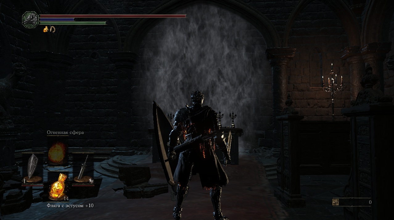 Дошел до места, где нужно спрыгнуть вниз, чтобы попасть на арену к Мидиру, но перед этой дырой дымчатая стена, которой по идее там быть не должно, а взаимодействовать с ней никак не могу. Как решить эту проблему?