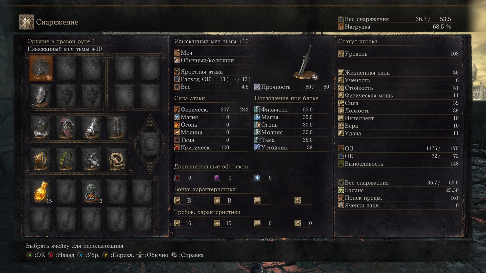 Меч тьмы классная вещь. Лёгкий, атака быстрая, болезненная, апается обычным титанитом, а потом чуть позже можно перековать, чтоб бонус от ловкости и силы был на "уровне" B. Всю игру с ним прошёл, как перед Хранителями бездны выбил так из рук и не выпускал...