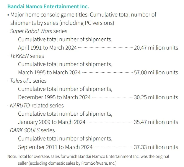 В своём последнем финансовом отчёте Bandai Namco опубликовала данные о продажах своих основных консольных франшиз. Dark Souls занимает второе место с 39,71 миллиона проданных копий.
