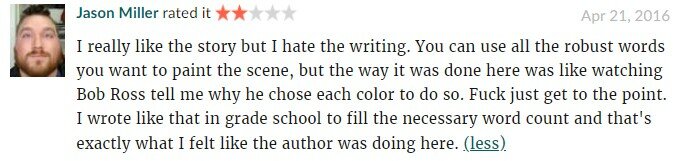 Люди пеняли на автора и за чрезмерные описания, и за душные детали, и за затянутые боевые сцены, и за корявый слог. Да и в принципе за неумение обращаться со словами. Был даже один, который озвучил мои мысли: так пишут в начальной школе, когда не знают, как, пытаясь заполнить пустоту всеми известными словами.
