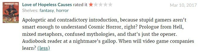 Отдельно высказывались о проблеме «игровой» литературы в целом: ее не воспринимают всерьез, считают придаточной и глубоко вторичной. Да, это правда, что «игрокниги» всегда будут приложением, но приложения бывают разные. Комментаторы грустили по этому поводу, ведь существует столько проработанных игр и игровых вселенных – бери да пиши хорошие книги, – а на страницах все время получается дешевая графомания.