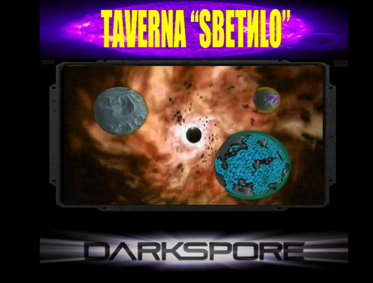 Эта таверна являет собой огромный корабль! Его длина - 2600 метров. Кроме увеселительных заведений таверны на корабле также имеются турболазеры и ионные пушки, дабы избежать неприятностей с гроксами или Тёмными Спорами. Также у нас есть один довольно крупный корабль-защитник на случай необходимости, и еще звено истребителей. Сюда прилетают со всех уголков галактики!