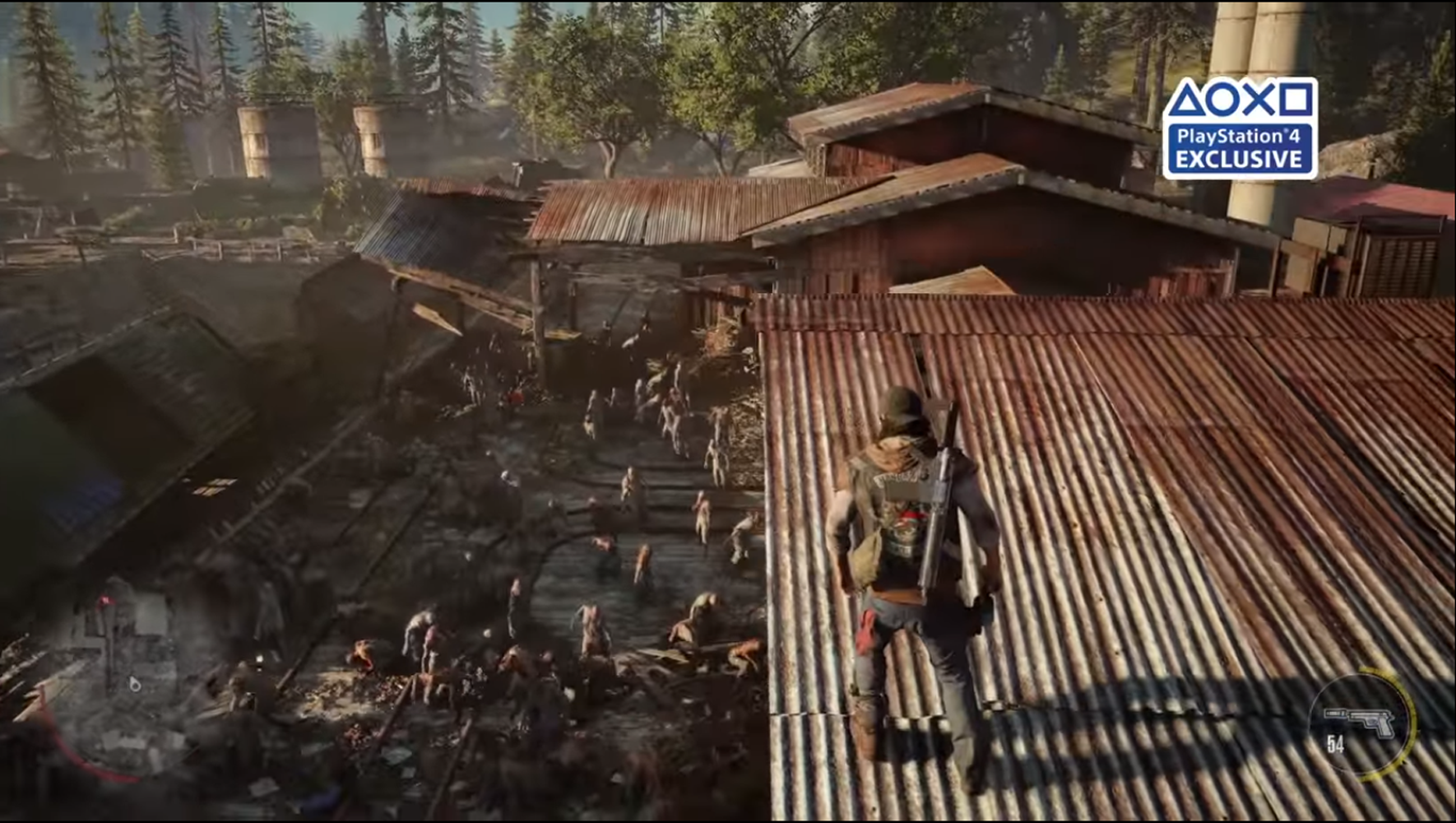 На E3 SONY показали свой новый эксклюзив Days Gone . Игра представляет собой сурвайвол экшен . Действие игры происходит спустя примерно два года после трагедии повлекшей толпы зомби . В геймплее продемонстрирована одна из сюжетных миссий . Первое , что бросается в глаза это довольно хорошая графика , которая уже не новшество для консолей . Все выглядит ярко и насыщенно . Был продемонстрирован крафт , который был сделан по типу The last of us . Заявлен открытый мир , фауну которого кроме зомби будут населять еще и животные . Разработчики утверждают , что в игре можно проходить одни и те же ситуации по разному . Природные условия будут рандомно генерироваться , что будет вносить определённую сложность в прохождении . И самое главное - это куча зомби , которые представляют собой абсолютно тупое мясо гонящееся за персонажем по всей карте , их действительно очень много .Буквально чувствуется обреченность персонажа . Под толпой зомби ломаются двери и окна , железные поручни и крыши . Геймплей напомнил мне одну из серий Walking dead , где главный герой был в окружении миллионов зомби . Единственное они выглядят очень хило , буквально одна пуля и нет мертвеца в живых .Правда это замещается толпой . Чем то похожу на орду в left 4 dead только больше . В итоге нас ждет , The last of us в открытом мире . Как идея зомби тематика уже заезжена , правда действительно хороших игр было очень мало . Если в Days Gone будет плохой сюжет , то это будет провалом .