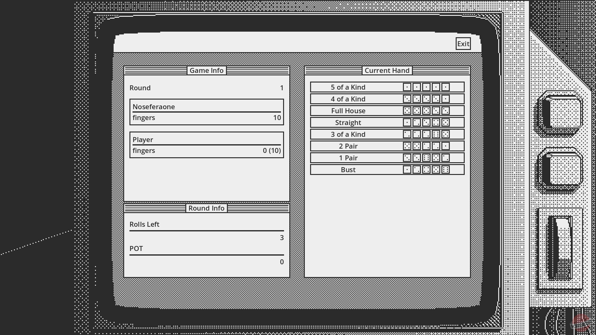 Правила просты: бросаешь пять кубиков, пытаешься собрать покерную комбинацию получше, чем у соперника. Даётся три переброса на раунд. Кто собрал лучшую руку — тот и выиграл. Играешь до тех пор, пока не обчистишь противника дочистую или он тебя. А ставки тут делают на пальцы — в прямом смысле слова. Если проиграл партию, то всё — конец, труп за борт. Но это рогалик, поэтому начинаешь заново уже с другим персонажем. Счёт убитых растёт, а ты снова пытаешься выбраться с этой проклятой яхты.