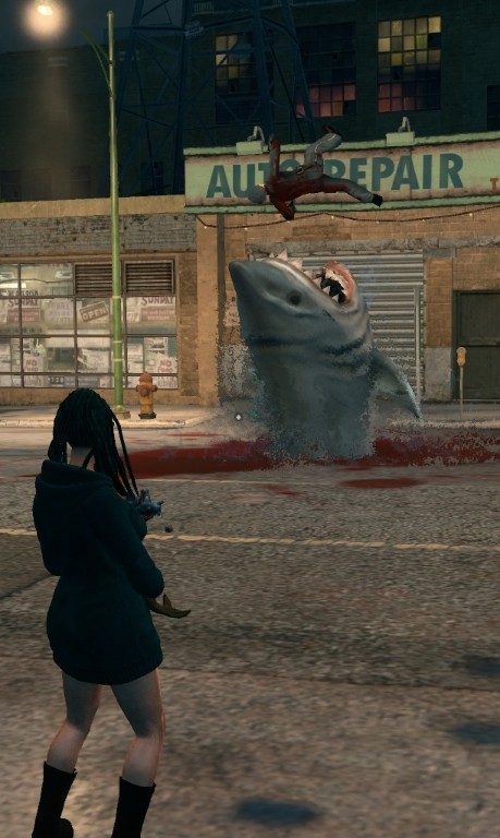 Расстреливать людей рыбьими потрохами это уже весело, а если после этого их еще и акула съедает то это просто прелесть