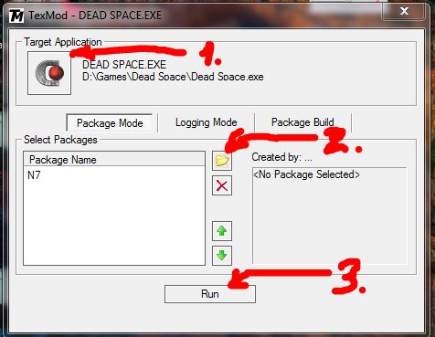 Ripibra STERVOZZz Секрет А Текстурные модификации такого типа расширения (.tpf) ставятся с помощью простой программы texmod. http://www.playground.ru/files/tutorial_po_texmod_texmod-20049/ 1. Клик по иконке и указываем путь к Dead Space.exe 2. Находим файл в формате .tpf (Например N7.tpf) 3. Кнопочкой "Run" запускаем игру и играем с новыми скинами.