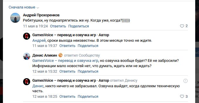 Однако затем стали отвечать в комментариях о том, что локализация не готова и у неё сложна техническая часть. Дата локализации постоянно сдвигалась, а вопросы у людей только нарастали