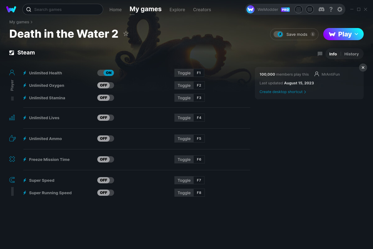 - Запускаем игру через WeMod на кнопку Play.