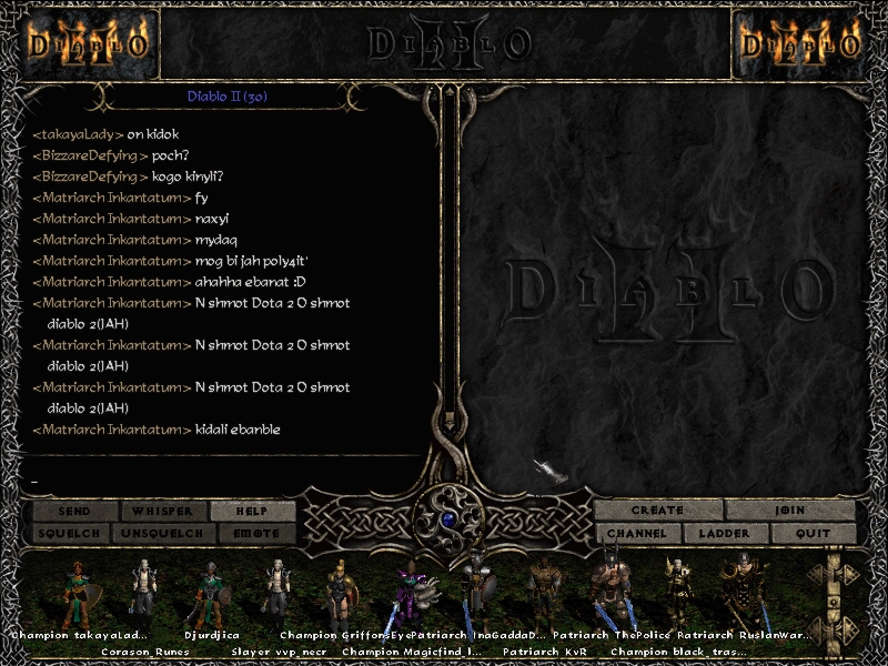 мдее.. мдаа.. © в лучшие моменты, когда я мог (и хотел) шпилить в д2 постоянно, ни разу не приходило в голову спамить что-либо в чате. короче, я бы уже за это банил. :-)