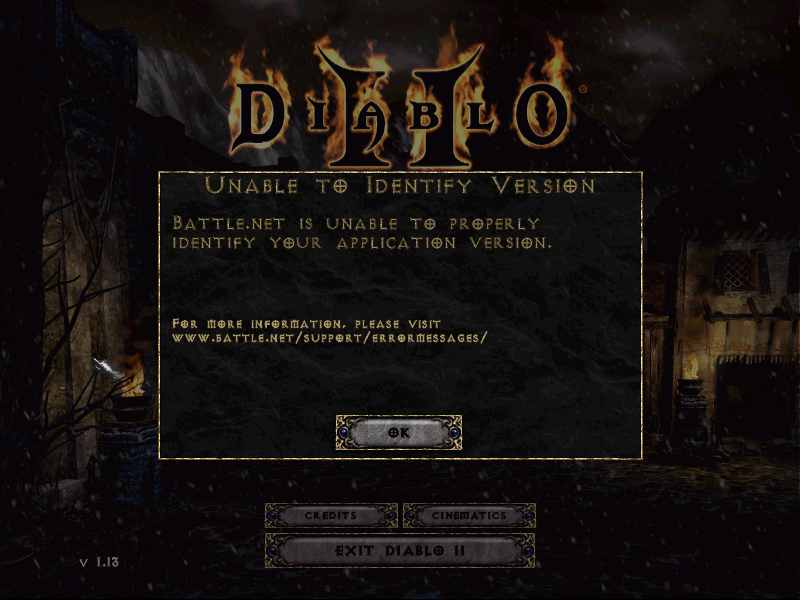 Вобщем, обновил версию до 1.13, скачал файл gate. Потом узнал что есть патчи 1.13а, б, с и д. Скачал 1.13д. Открылась игра - все работает. Через час снова зашел, потому что договорился с другом поиграть. И пишет ошибку и просит зайти на battle.net/support/errormessages/ , хотя, я проверил, такой страници нету.