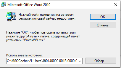 При открытии вылетает установщик майкрософт а далее говорит что нету файлов установки.