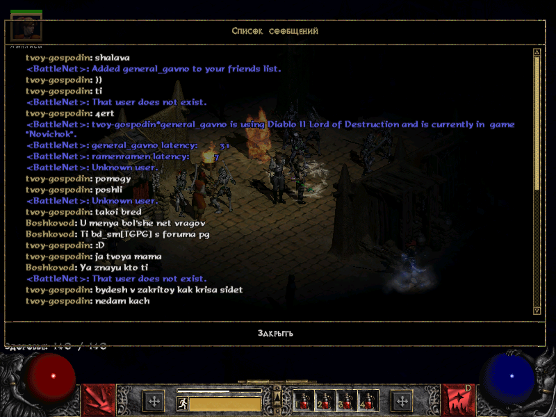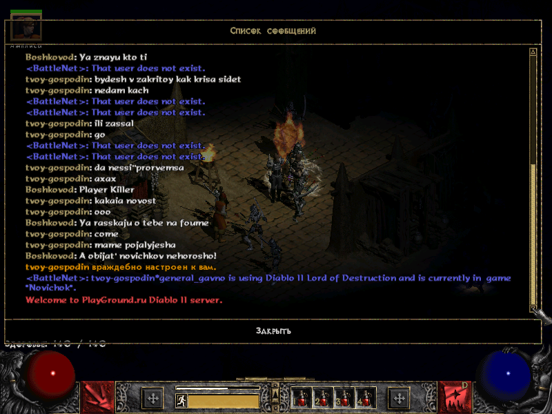 Дело было так: по совету отцов я решил сыграть на хардкоре. К миру присоединилась сорка Mr_Ench примерно 12 уровня. Мы пошли в канализацию качаться, как неожиданно в игру зашел некий игрок с ником Tvoy-gospodin и сразу объявил мне вражду(хост). Сорка сразу же открыла ему портал. Я не заскринил, тк сразу вышел(на харде повышенная осторожность!). Очевидно, они были в зговоре. Я зашел снова на сервер, дабы посмотреть ник напавшего. Сорки уже не было, но был тот же некромант 54 уровня с оскорбительным ником Tvoy-gospodin*general_gavno.