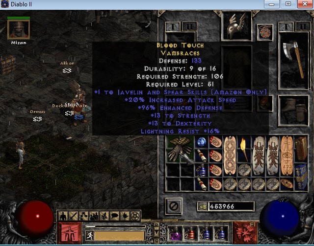 4) Оружие в BA потому что: а) решил попробовать что-то новое в pvm (pb надоели); б) удалось быстро найти death по хорошей цене, да еще и близко perf ed; в) барб у меня рассчитан не только на mf, но и на фарм голды для gamble, поэтому 100к на починку для него не проблема.