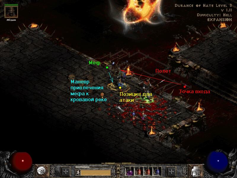 чармики с олрез или с каким то одним резом.... или найди купа талраша броник - он и для МФ хорош и резы дает.... близз должен быть приберно 3-4к для нормального удбиения мефа, а вот убиваешь ты его не правильно.... нада становиться не рядом с ним, а подводить его к огненному промежутку через который ты тп можешь а он нет... становиться на расстояние чтобы торчали только его ноги и лупасить по нему близзом, а как помрет - тп к мену подобрал дроп и вышел.... для пояснения смотри схему... думаю разберешься... (да и постарайся его смиту не тревожить.... их можно и не убивать)