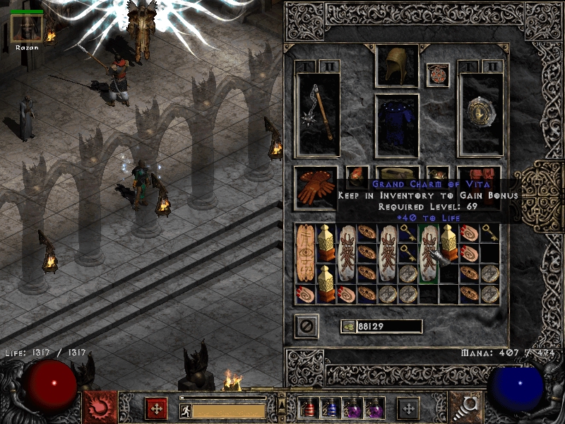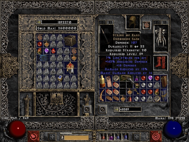 Эксп на Элдриче прибавлялся достаточно бодро, поэтому не преминул возможностью качнуть на нём пару уровней. Тем более, что фул фаер спек разносит его в щепки за считанные секунды. Ну а потом я переключился на фарм Андариэли, чтобы быть готовым к следующей сложности во всеоружии. Было бы здорово найти Viper, Moser's, Rockstopper и String of Ears. А может она подарит мне ещё и содж?