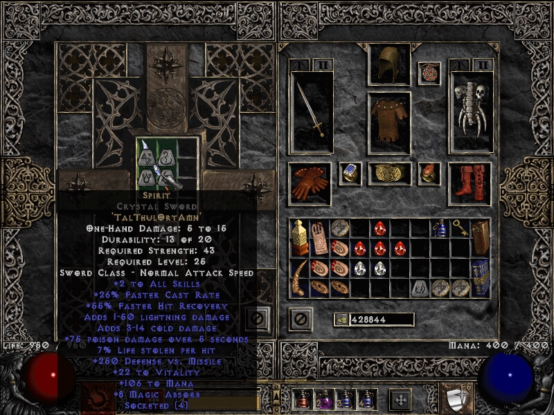 Перед началом 2 акта Nightmare требовалось улучшить некоторые слоты экипировки (как мои, так и мерка). И апгрейд не заставил себя долго ждать. Вот, например, меч для спирита, найденного на одном из забегов
