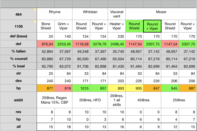 Rhyme лучше собирать в Heater там 42% базовый блок, но если не получается найти можно в Grim Shield там 40% при такой же defence и даже больше (до 150, heater до 110), при этом Grim Shield валится везде.