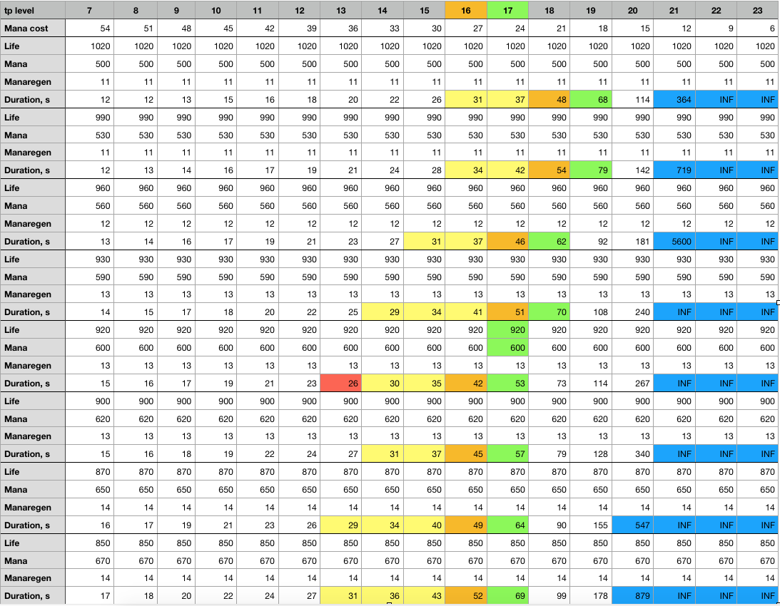Тебе не нужна такая, ок. Наверно новичку какому-то зайдет. А кому то пригодится какая то инфа. Например по той табличке, что тебе не понравилась я вывел время непрерывного телепорта в зависимости от количества маны и скиллпоинтов телепорта.