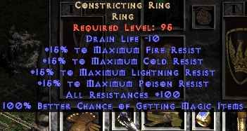 Кольцо впервые вижу... Даже информации на diablozone уже нету о таком. Сразу решает все проблемы с резизстами. И не жалко позатротить до 95 лвл.