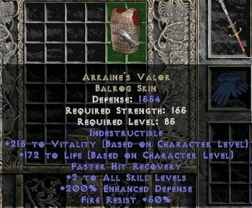 Честно - не помню статы, но на всякий случай скажу, что механика игры в то время сильно отличалась и то, что тебе сейчас крутым не кажется могло тогда быть очень жгучим. Так, например, у прокаченных персонажей на хелле урон в окне статов отображался порядка нескольких сотен, не больше. Сейчас это несколько тысяч, а в случае какой-нибудь лайт-сорки - десятки тысяч. Так и 500 дефенса вполне могли считаться роскошными. Кстати, многие известные нам уники вообще были несколько "порезанными", хотя правильнее сказать, что это нынешние - расширенные.