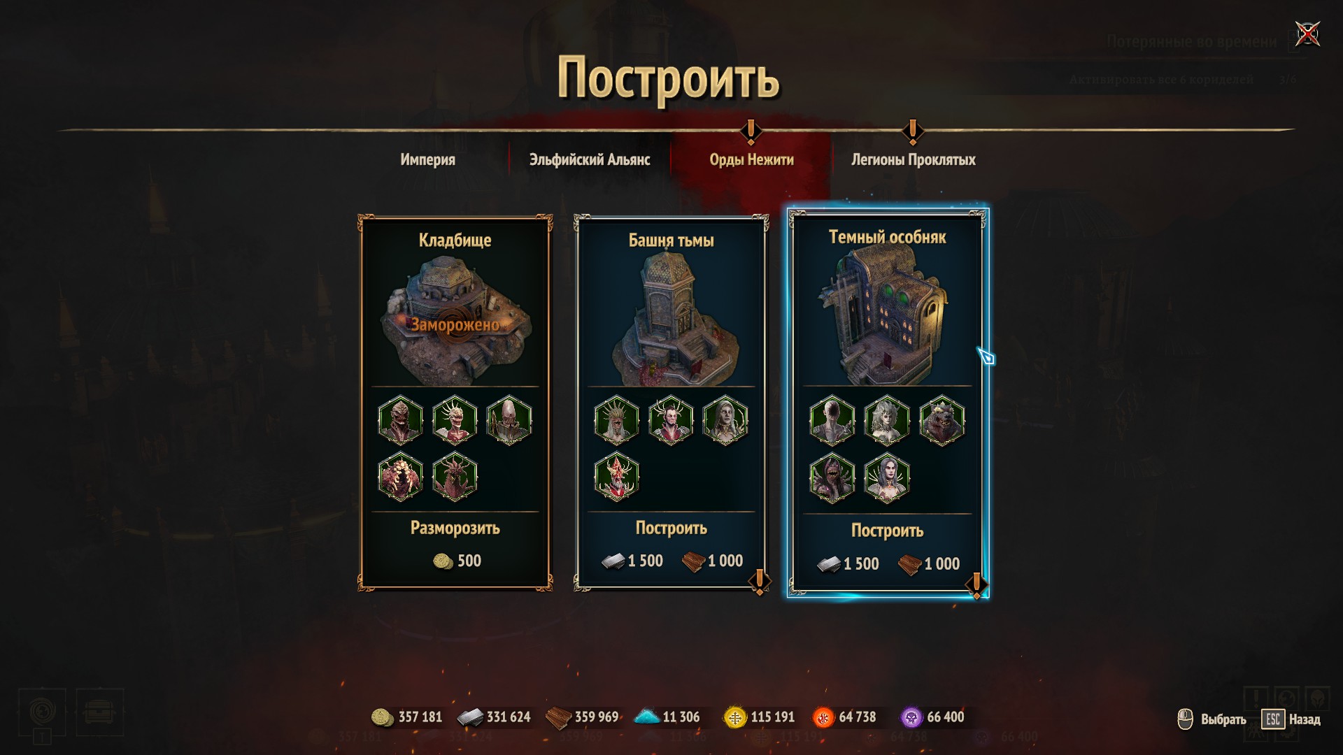Здесь мы будем хранить ресурсы, общаться со спутниками и отправляться на продолжительные задания в земли враждующих фракций, а после постройки соответствующих зданий – учить заклинания, улучшать оружие, нанимать и обучать бойцов.