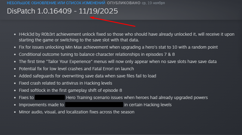 Супергеройский интерактивный хит Dispatch продолжает совершенствоваться: разработчики выпустили крупное обновление, которое устраняет ключевые ошибки и повышает стабильность проекта. Патч затрагивает как технические аспекты, так и важные сюжетные элементы, улучшая общее качество игры.