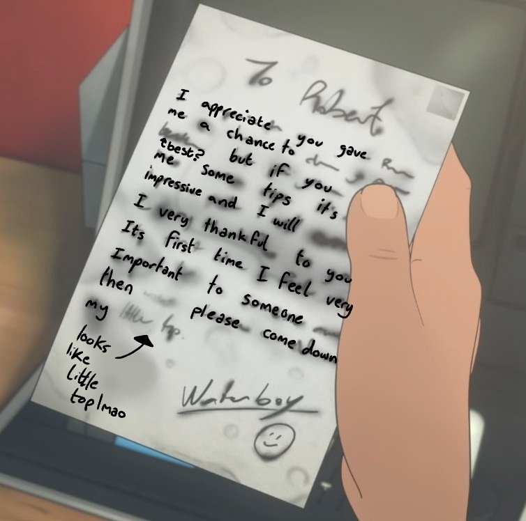 Если игрок принимает решение взять в команду именно Водобоя, тот позже оставляет Роберту трогательную благодарственную записку и небольшой подарок. Однако из-за перманентно влажного состояния персонажа чернила на бумаге почти полностью расплылись, сделав послание практически нечитаемым. До недавнего времени.