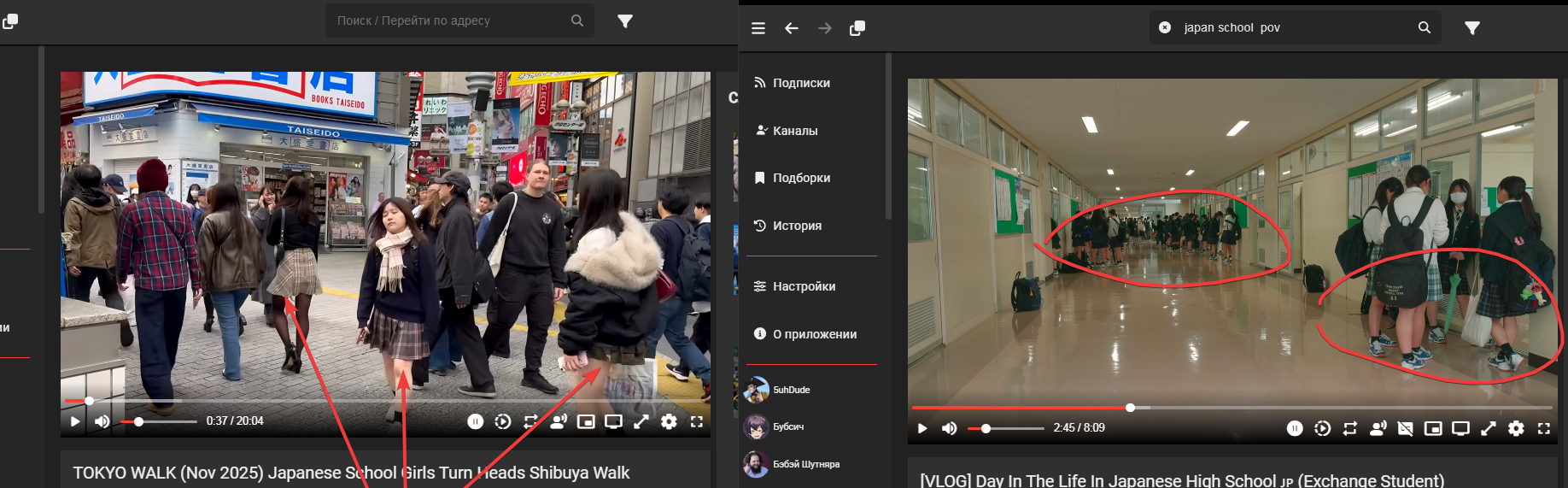Понял. Тогда объясни мне, почему когда я вбиваю "japan school pov", то мне выпадают видосы, где с первых секунд школьницы в коротких юбках? Причём это первые попавшиеся школьницы, а не которых я сидел и выискивал.