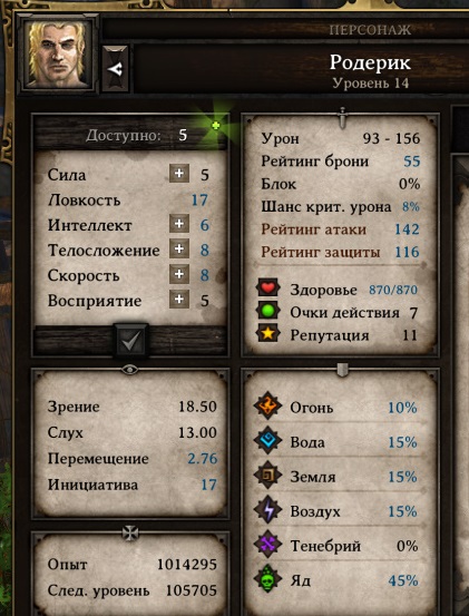 Ловкость 15 и +2 от снаряжения. Как видите, еще 5 очков в резерве держу, но почему то не могу вложить их в ловкость. Уровень 14. Началась такая беда на 12-ом. Кто нибудь сталкивался?
