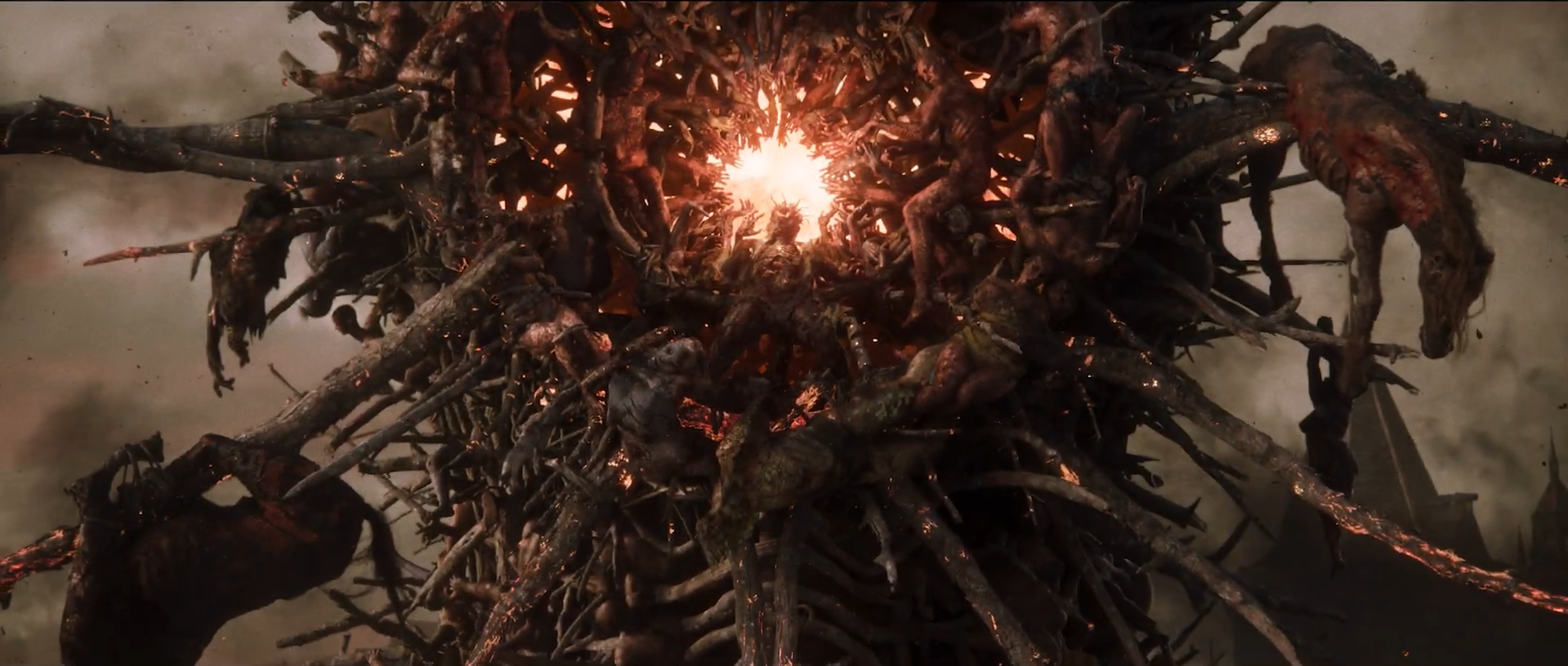 Про "бога Хаоса" же больше моё предположение. Ибо происходящее вокруг ничто иное, как - хаос, породившее какое-то облако из трупа полубога, скомкав всех присутствующих в единое месиво.