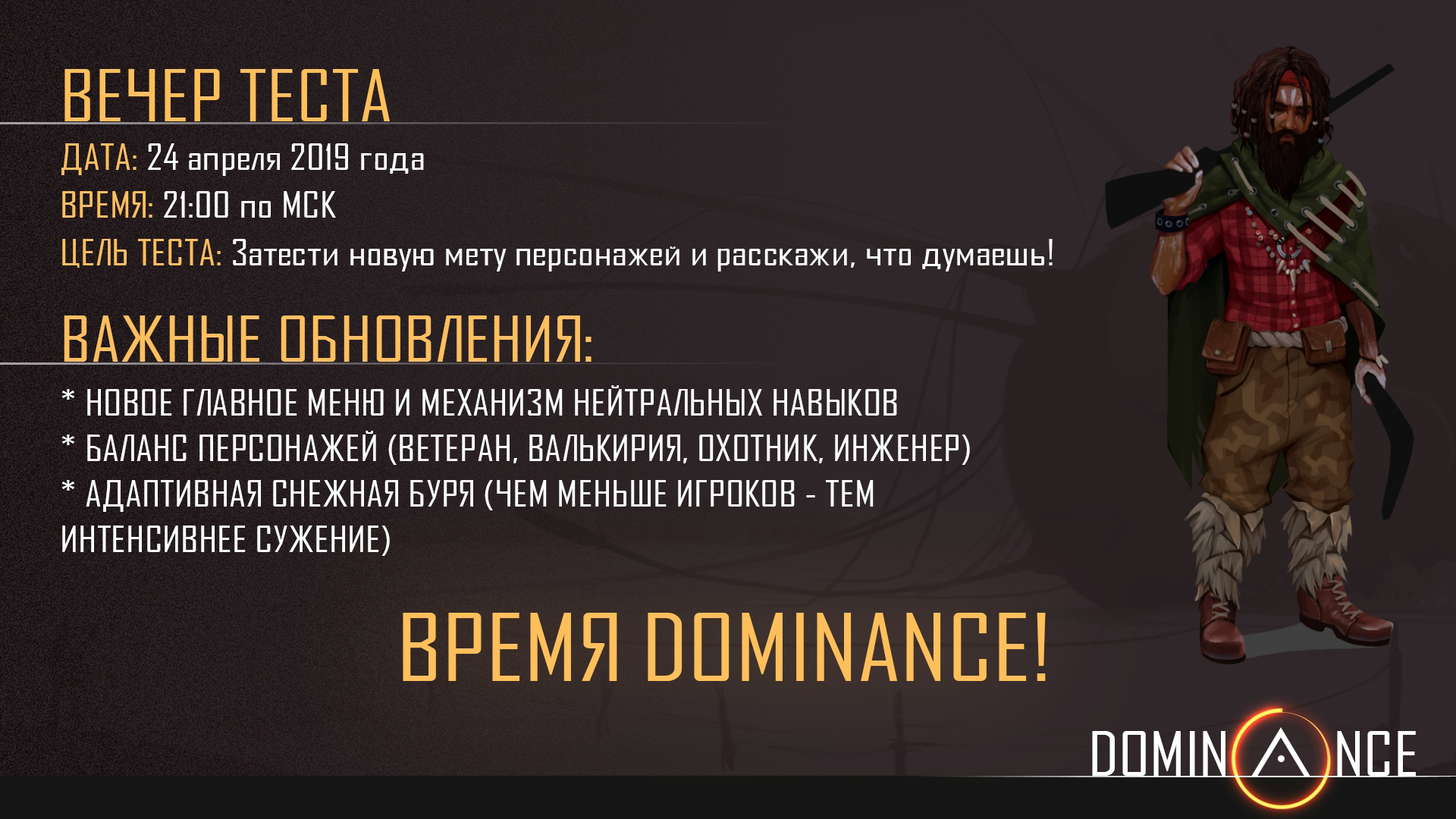 Сперва расскажем о самой игре: согласно предыстории Dominance, в 1963 году случилось масштабное Явление неизвестной человечеству цивилизации, а в 1986 году произошла Катастрофа, в ходе которой Земля была практически уничтожена волной природных катаклизмов. Игроки станут Ищущими — бойцами, отправившимися в заброшенный Город на поиски Артефакта, который делает нашедшего всемогущим.