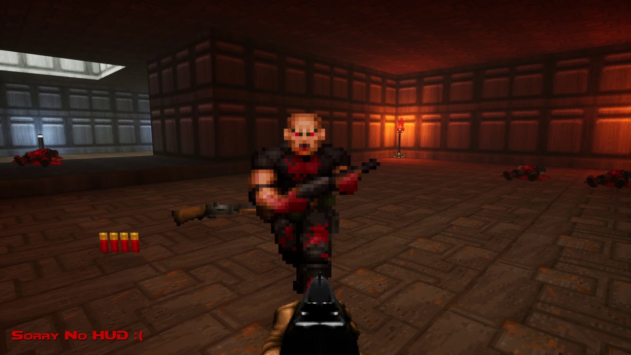 Из того, что мы видим, EvilReFlex портировал некоторые текстуры и спрайты игры. Игрок также может стрелять по врагам (хотя кровавых эффектов нет), а враги могут передвигаться. Кроме того, мы можем ясно видеть улучшенные световые эффекты Unreal Engine 4.