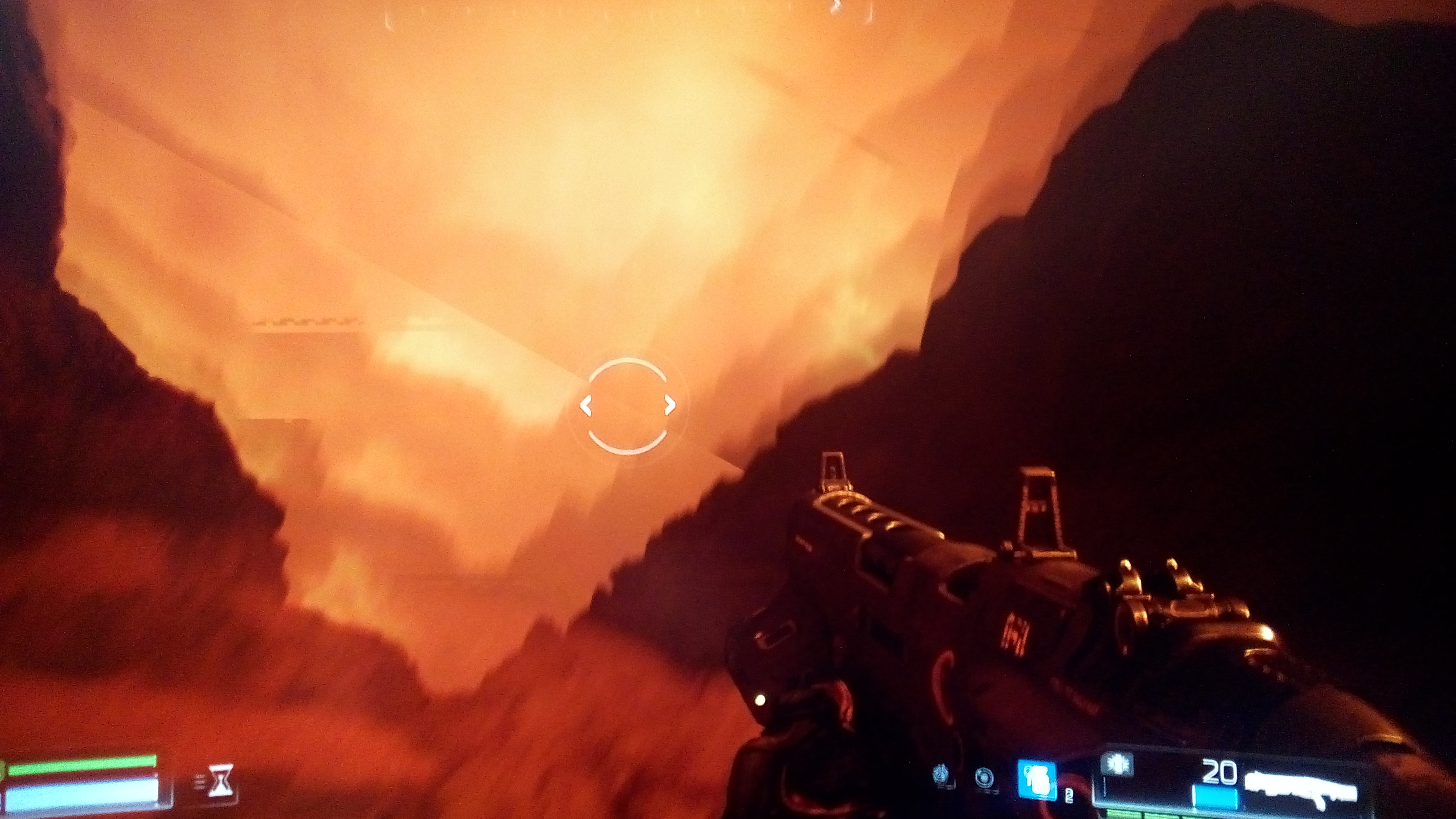 Доброго времени суток, по мере прохождения игры, стала возникать одна проблема, экран ровно поделен наискось от угла до угла, это заметно только при движении камеры (поэтому на скриншотах проблема исчезает), пробовал менять настройки от низких до ультра, менял разрешение и все остальное, ничего не помогает, игра куплена в steam, экран ноутбука 15.6", full hd, видеокарта gtx 1050ti, играется спокойно без подтормозов даже на ультра 60 кадров, перегрева не происходит, данная проблема наблюдается только в Doom. [фото делал с телефона]