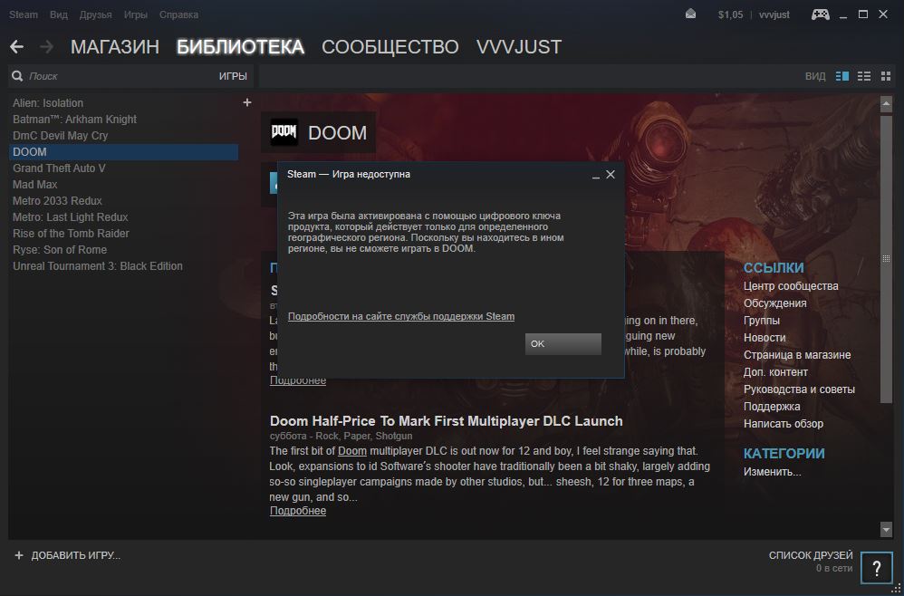 Но очень часто такие траблы, бывают из - за шаманства с стимом. Когда меняют принудительно регион проживания, например