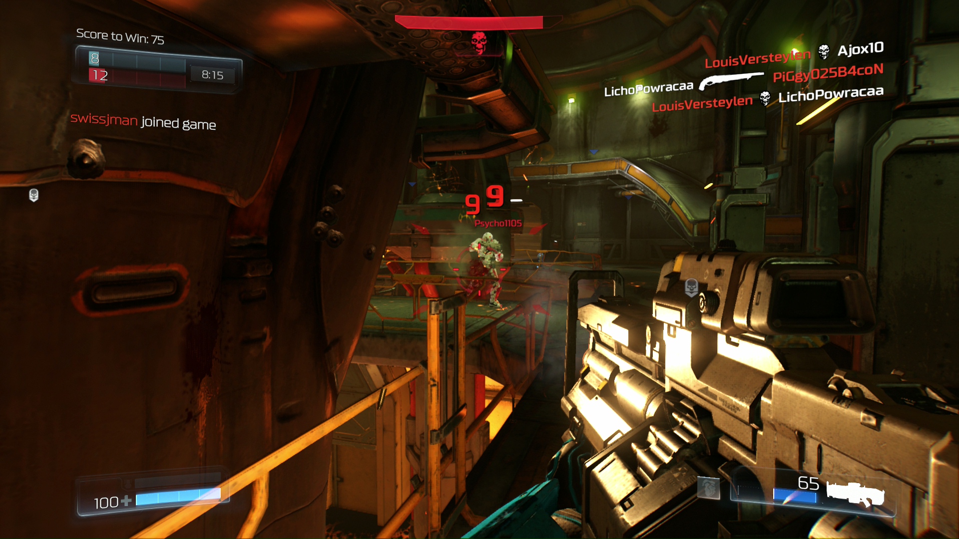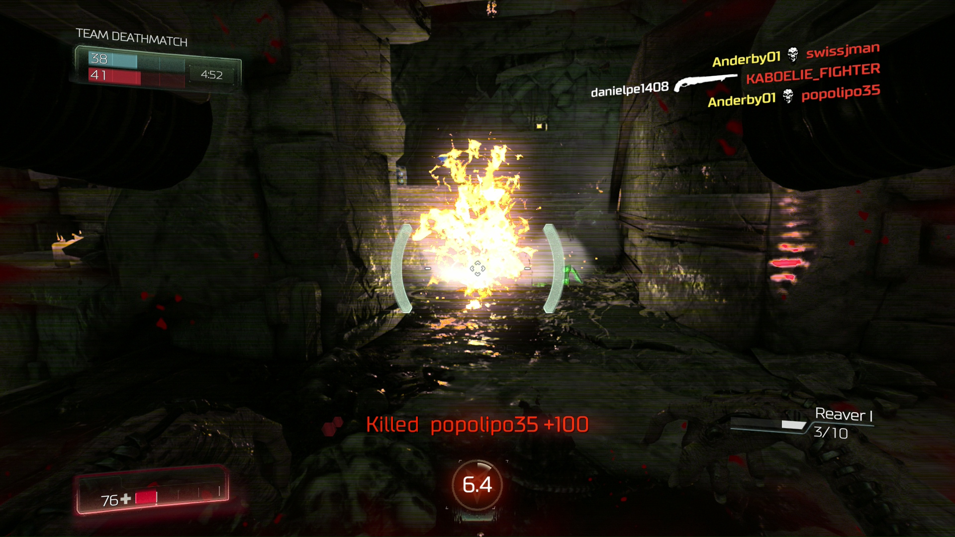 Чистая Halo, ну чистая. Только декорации другие немного, карты теснее. И оружия сильно меньше, техники, само собой, нет. Прокачка тупо для внешнего вида персонажа на который всё равно всем некогда смотреть. Раскраски оружия словно из Paint, при не-дефолтном виде исчезают многие детали и цвет сильно равномерный (спасает разве что возможность добавить на оружие пыль и царапины). Да и вообще это не нужно. Ближний бой интересно работает - "притягивает" противников с низким HP с трёх метров, отменяет перезарядку дробовика - в узких местах получается адская смесь - выстрел-удар-выстрел-удар. Хотя имбовых тактик, комбинаций и оружий нет совсем.