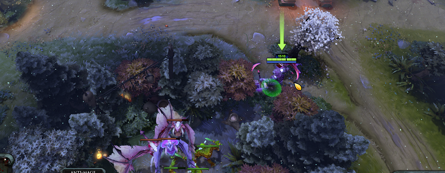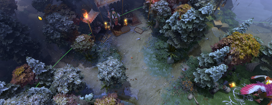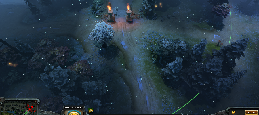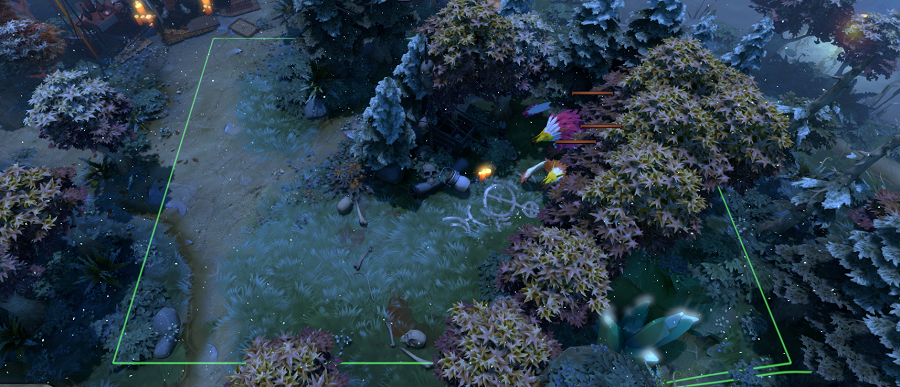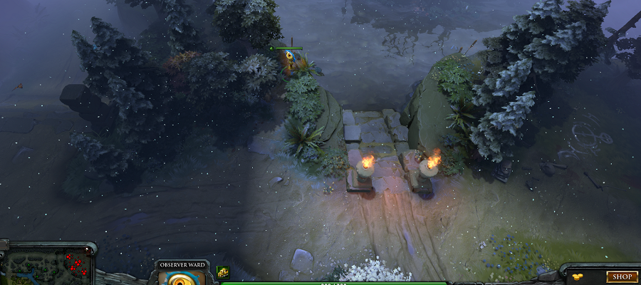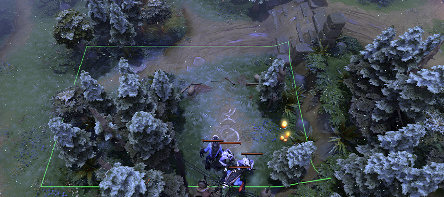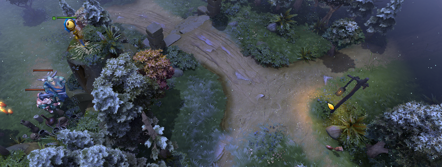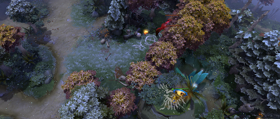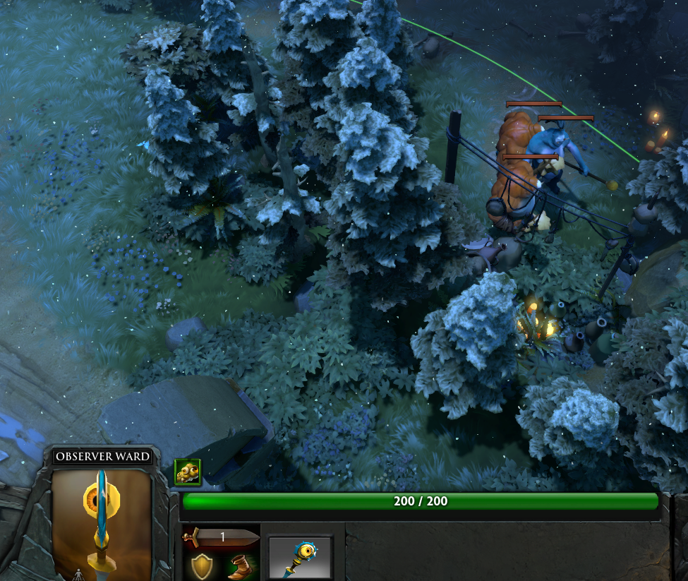 Но здесь есть небольшая хитрость. Съев\срубив одно из деревьев, Вы будете по-прежнему получать немного вижена на хайграунд. Конечно, если срубить все деревья вокруг, то вижена будет ещё больше, но тогда для врага будет слишком очевидно месторасположение Вашего варда.
