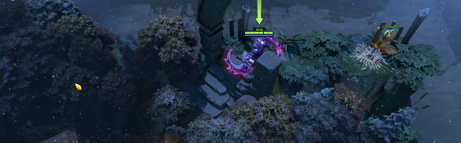 Valve изменили некоторые культовые и важные места вардинга на светлой стороне карты. Для примера возьмём это место. Привычный спот, на который сторона dire часто ставила варды для вижена на эншентов и мидовый хайграунд сил света. Однако сейчас Вы можете рассчитывать только на вижен эншент-крипов, посмотреть на хайграунд уже не удастся. Приходится искать компромиссы — или Вы будете видеть эншент-спаун (иногда очень важно в средней стадии игры) или только хайграунд мида (ключевой фактор на стадии лайнинга).