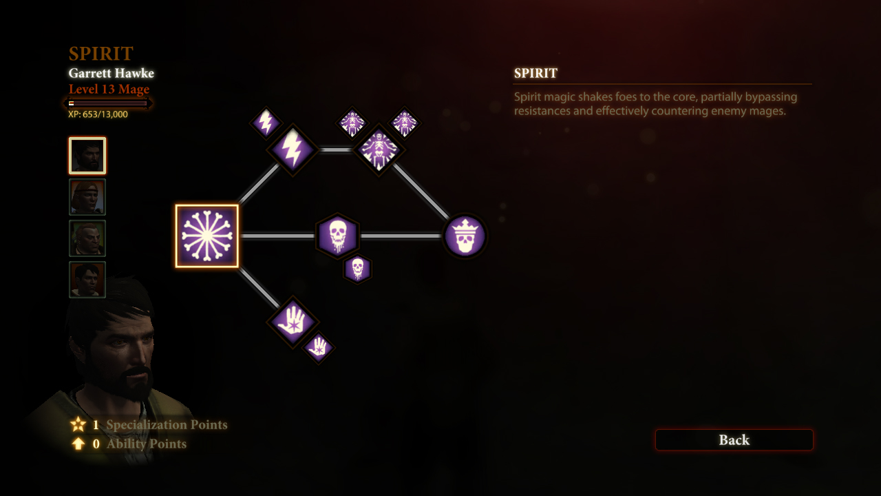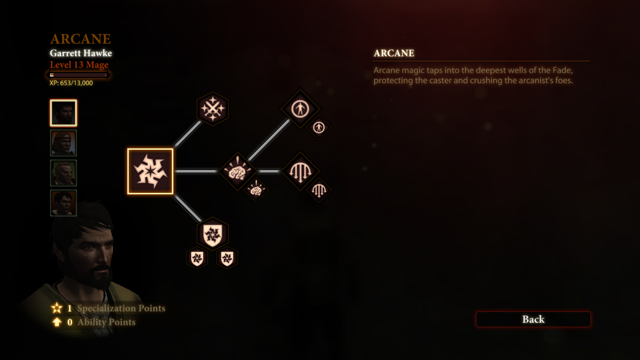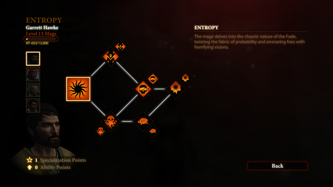 Все, теперь вспомнил. Я еще когда проходил демку заметил, что там над очками способностей есть очки специализаций. И еще, мне вот интересно почему в ДА2 нету красивых добиваний, как в ДА:О?