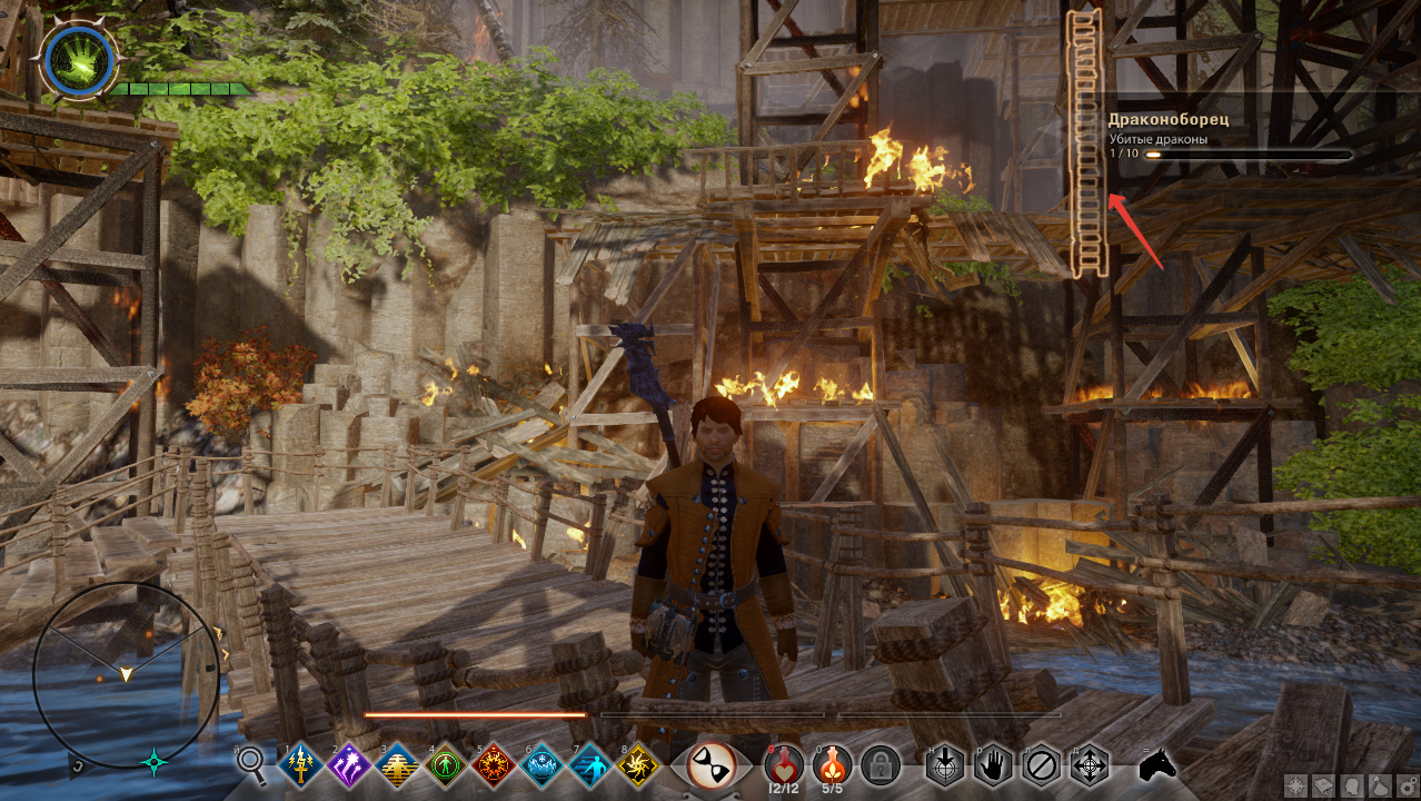 Там маг восстановит мост. Есть место, на середине порушенного моста, "задействовать" как у факела.