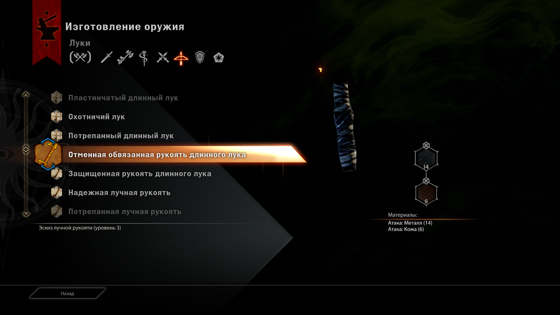 PS2. Эскиз рукояти 3-го уровня в вики есть - Отменная обвязанная рукоять длинного лука