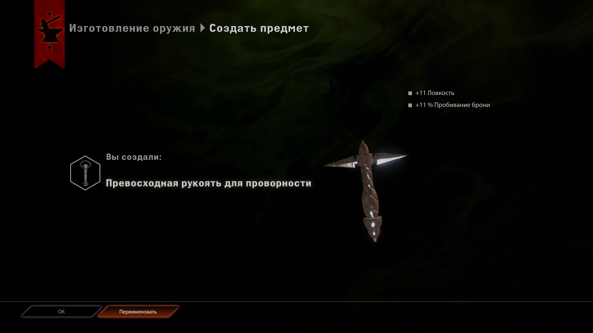 Такого эскиза в игре нет. Возможно, встречается уже готовая рукоять, либо это трудности перевода.