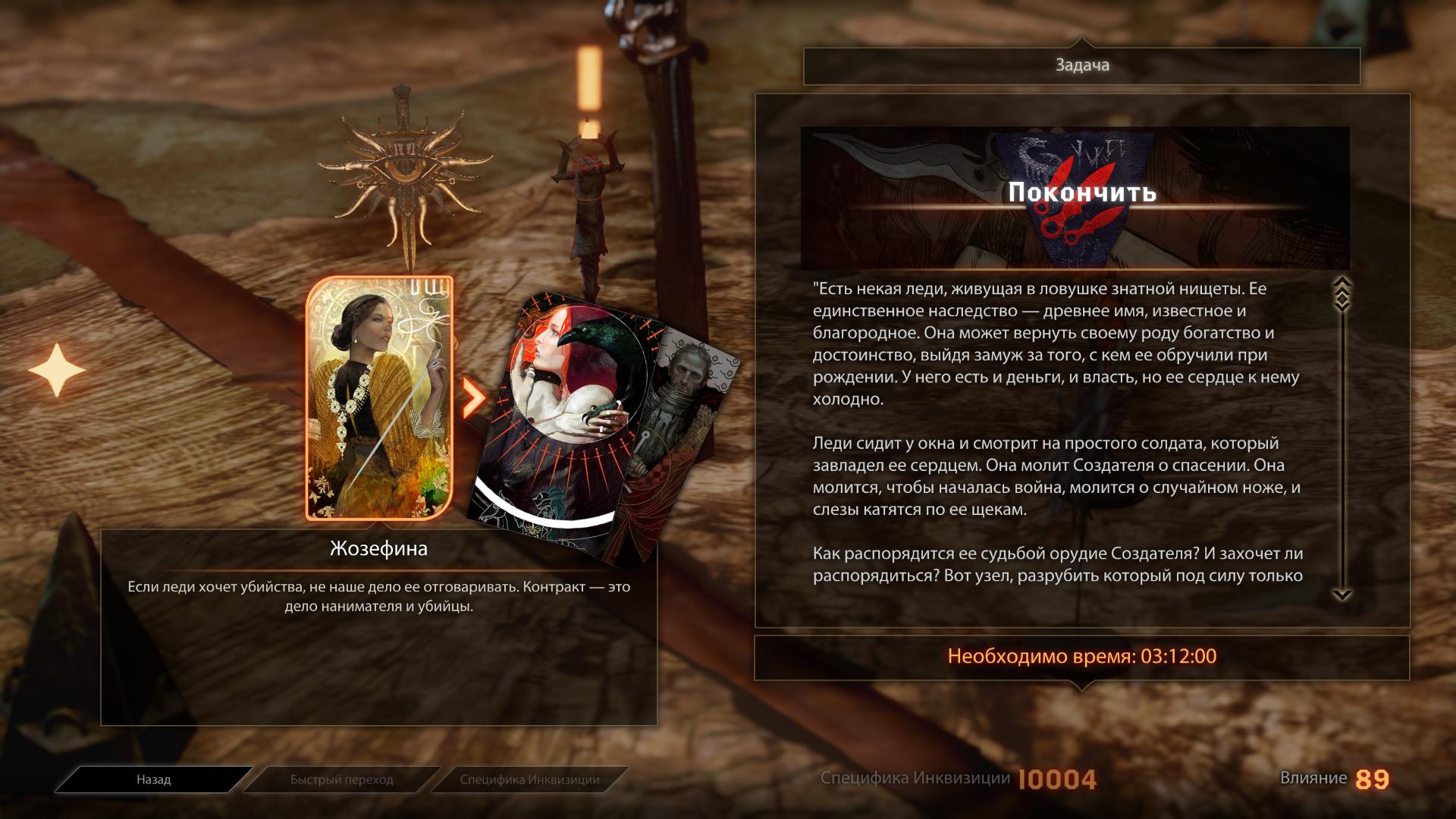 Здравствуйте. Решил перепройти игрульку на кошмаре перед тем как забить на неё насовсем.Прохожу с координацией Wiki (хочется более-менее идеального прохождения). Всю инфу нашёл (может плохо искал?) кроме квеста -Покончить! на ставке командования который выдаётся после принятия специализации-Убийца. Если кто владеет последствиями и подробностями прохождения прошу поделиться..Заранее Спасибо..