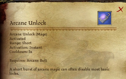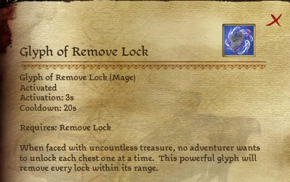 Arcane Unlock открывает простые и средние по сложности замки. Remove Lock откроет практически любой замок, кроме тех, которые в принципе не возможно открыть. Glyph of Remove Lock тоже самое что и Remove Lock, но открывает все замки в радиусе 30 метров.