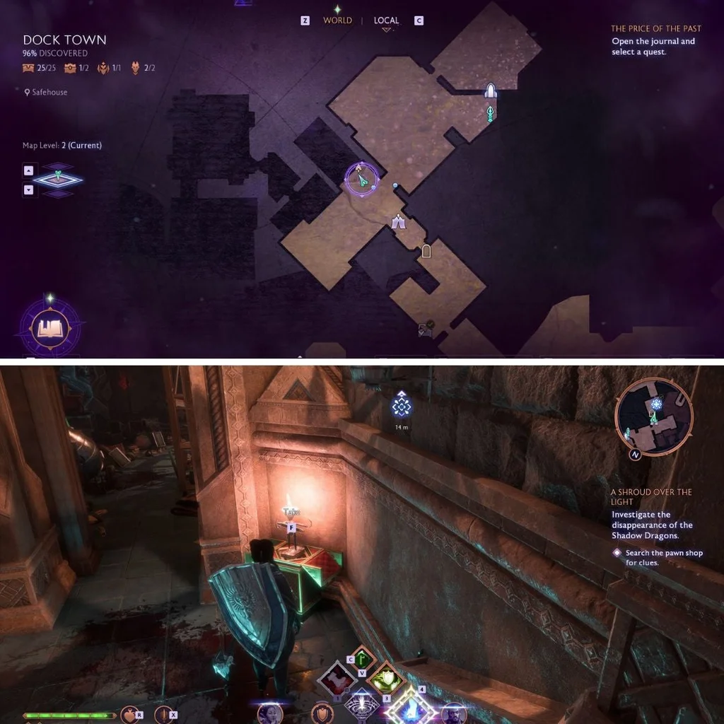 Первая «Светоносная Машина», с которой вы, вероятно, столкнётесь, находится прямо в укрытии Теневых Драконов. Она расположена в главной комнате, перед тем, как вы попадёте в зону с ломбардом. Чтобы попасть в это место, необходимо пройти первую миссию в Док-Тауне, а после этого вы сможете возвращаться сюда каждый раз, когда будете посещать Минратус.