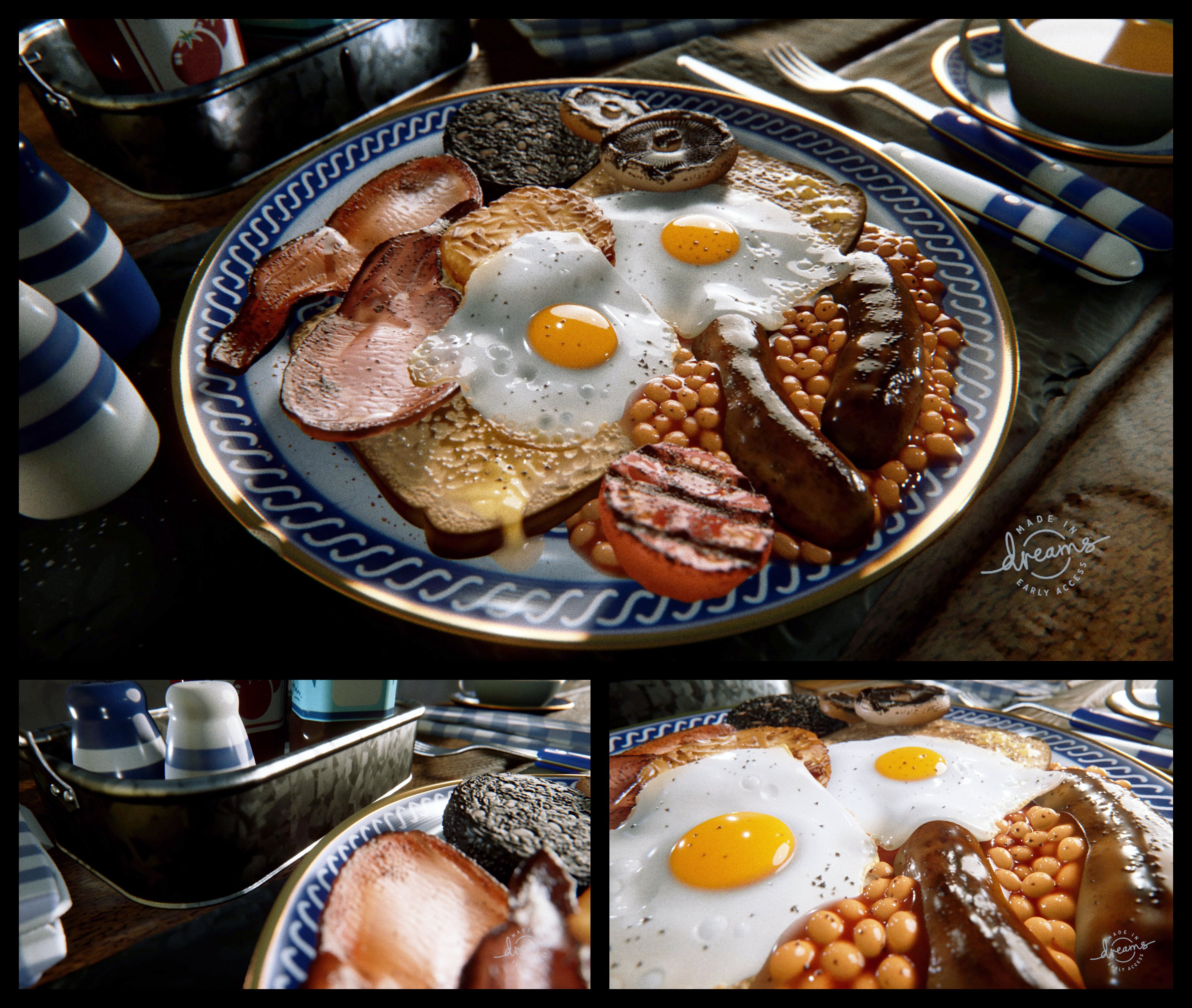 Пользователи твиттера устроили небольшое соревнование, целью которого было создать в Dreams сцены классического английского завтрака. И если в некоторых из них легко узнать игровые модели, то другие трудно отличить от реальных фотографий.
