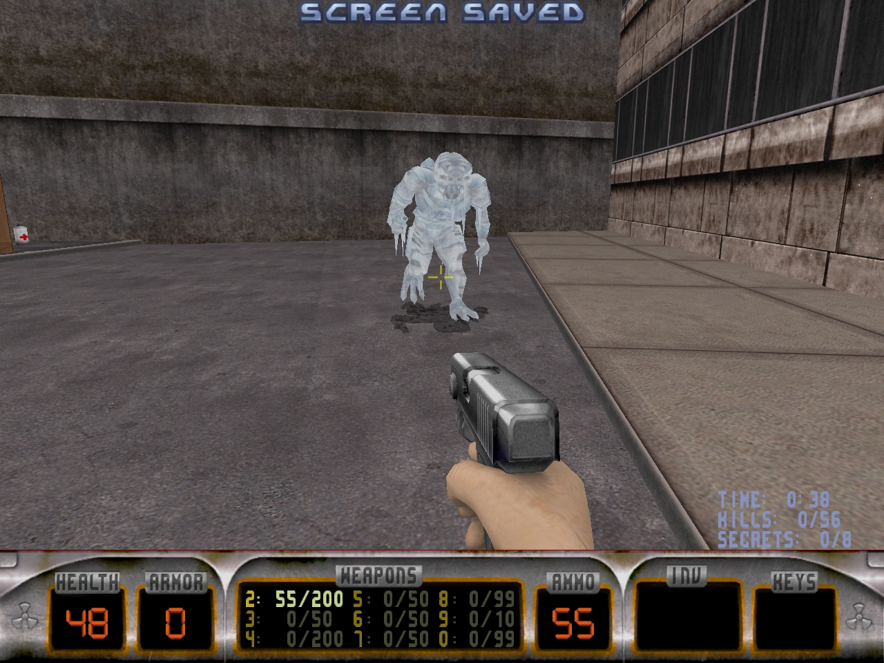 Картинка точно такая же, как и со старым Polymost рендером, недоступны новые эффекты. Нету тогда смысла ставить галку Polymer при запуске, можно использовать старый рендер. Глюк скорее всего связан с новым рендером, в HRP v.4 включили эффекты sdduke'a, в которые, помимо прочего, входили и улучшенные модели замороженных элиэнов.