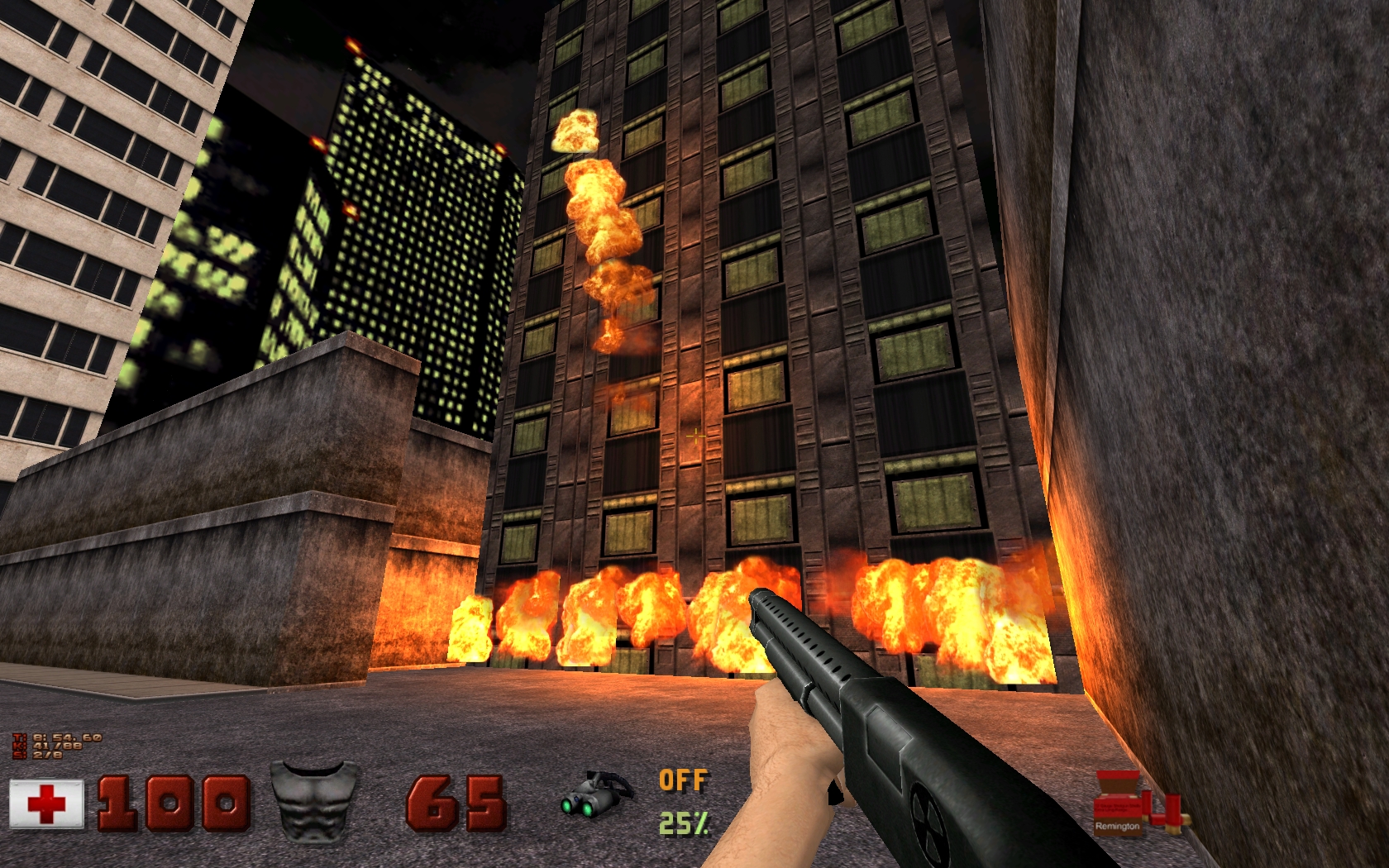 От себя добавлю, что рендер еще нужно оптимизировать, т.к. в некоторых местах уровней, а также при большом скоплении врагов при любом разрешении экрана фпс иногда может значительно проседать. Хотя на последних видеокартах все должно быть нормально.